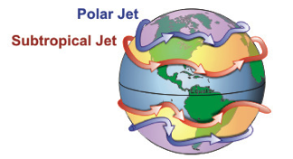 | Jetstream (planetary winds) | Fast-flowing, narrow air currents that form where two different air masses meet. Caused by Earth's rotation and uneven heating from the sun. Polar jetstream in higher latitudes and subtropical jetstream along mid-latitudes.,  |