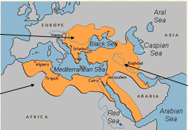 | Ottoman Empire | found on three continents (Asia, Africa & Europe); famous for conquering Constantinople, and trading in coffee & ceramics,  |