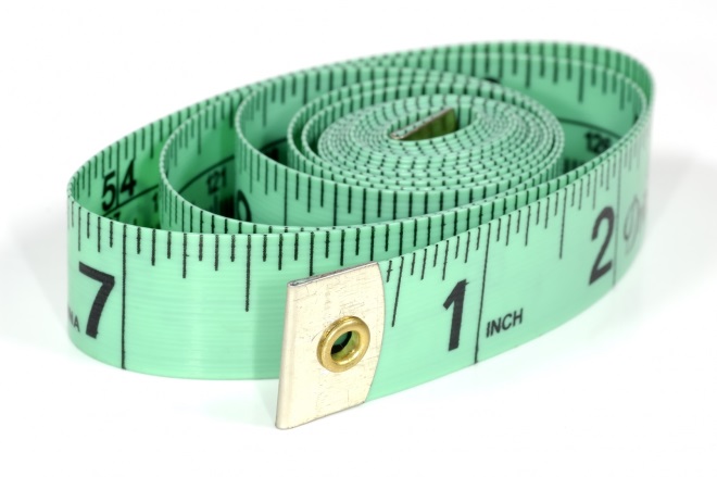tape measure,  | A narrow strip of plastic or cloth used to measure large and rounded areas such as the body. |