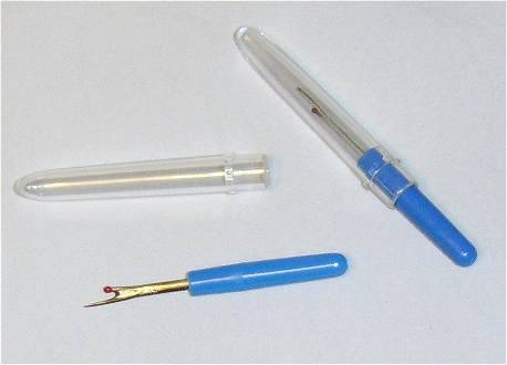 seam ripper,  | Used to cut and remove unwanted stitches. |