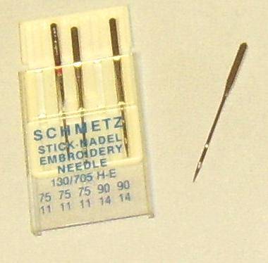 sewing machine needle,  | This needle has an eye and and point at the same end. |