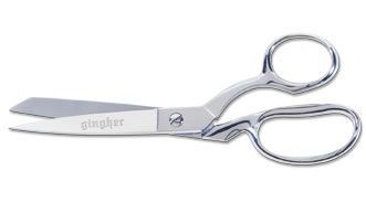 shears,  | Scissors used for heavy duty cutting of fabric. One handle is larger than the other and they have a bent edge. |