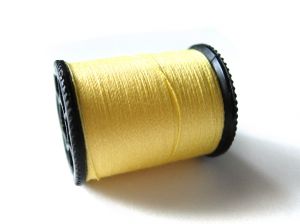 spool of thread,  | A very thin cord made mostly of cotton that holds seams together permanently. |