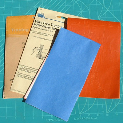 tracing paper,  | A special waxed paper used to transfer pattern markings to fabric. |