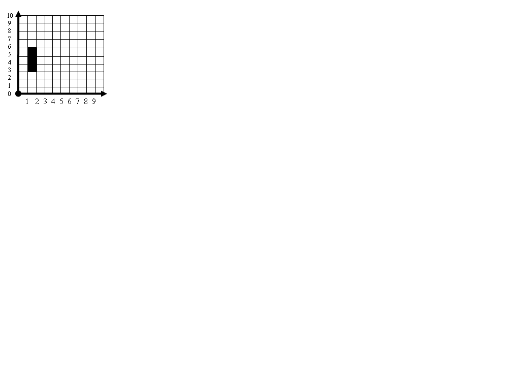 The figure below shows the position of a garden bench in Sam's backyard. Sam and his family are moving the garden bench 4 units to the right and 2 units up. What are the coordinates of the new position of the bench?,  | (5,5), (5,8), (6,5), and (6,8) |
