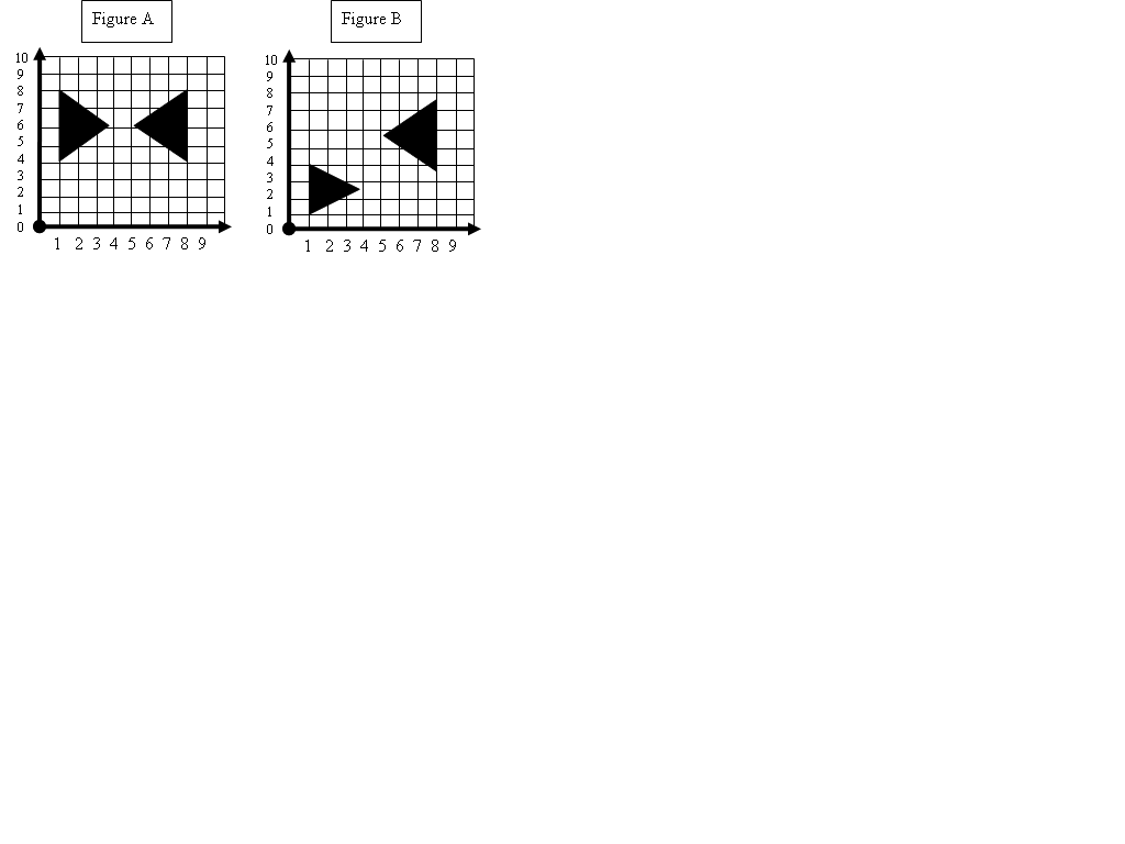 Describe the translation of the figure?,  | down 3 and right 5 (remember to look at the movement of one vertex of the triangle to see how it moved) |