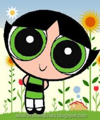 ¿Cómo es Buttercup?,  | Tiene pelo negro. Tiene ojos verdes.Su hermana se llama Blossom. |