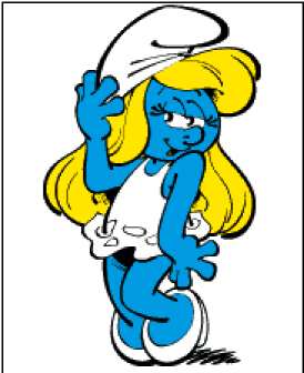 ¿Cómo es Smurfette?,  | Es muy baja. Tiene pelo rubio. |