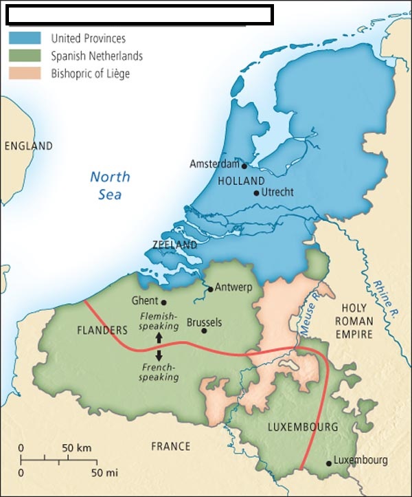 In what century would this map be accurate? What specific event does it illustrate?,  | 16th century: The Dutch Revolt against Spain in 1580. |