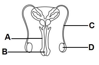 Identify structure B,  | urethra,  |