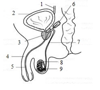 Identify structure #6.,  | urethra,  |
