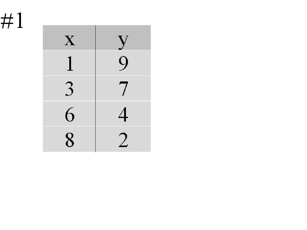 Which equation could be used to represent the rule for the table? a) x + 4 = y b) x - 1 = y c) x = y d) 10 - x = y,  | d) 10 - x = y |