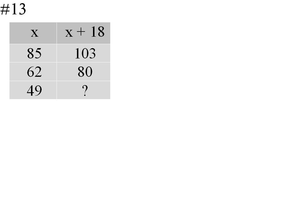 What value will complete the table?,  | 67 (put 49 in place of x and then add 18) |