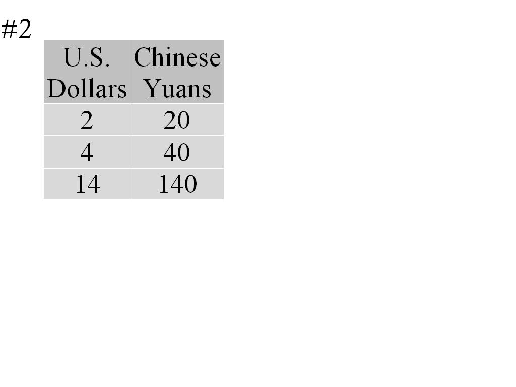 On a trip to China, James exchanged currency as shown in the table. How many Chinese Yuans could James get for 12 U.S. dollars?,  | 120 (Multiply 12 by 10 - using the same pattern in the chart) |