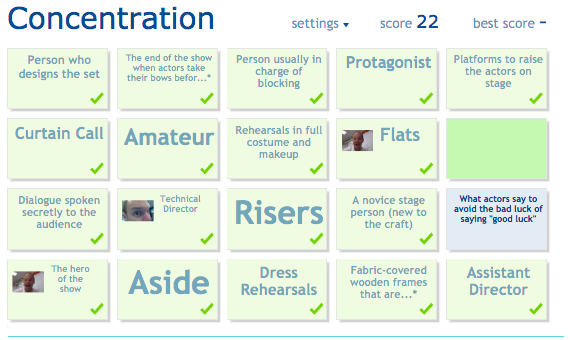 Try your best to play Matching or Concentration. Do not use the other two games. You can use your vocabulary packet to help you.