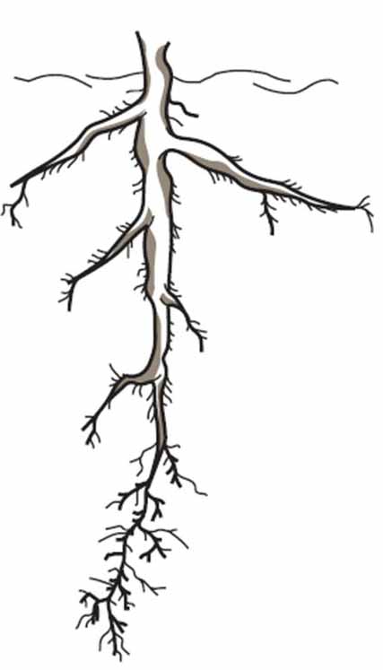 | Taproot System | a root system that has one large primary root and many secondary roots branching from that root |