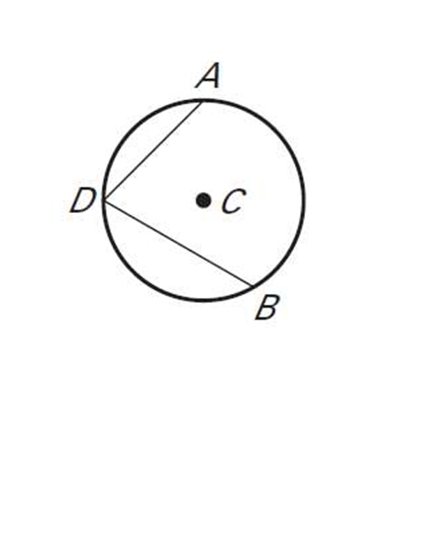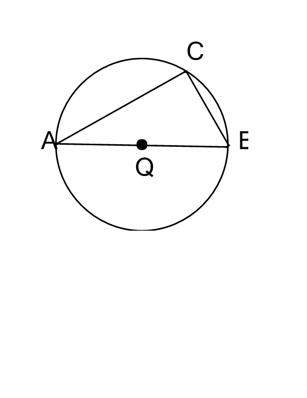 What is the measurement of angle C? Why,  | Angle C is a right angle because intercept arc is 180 degrees. |