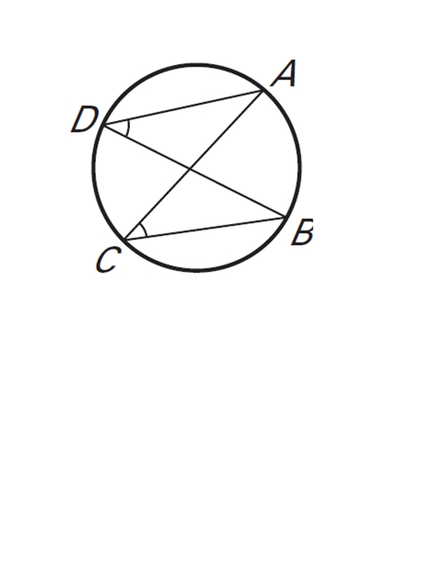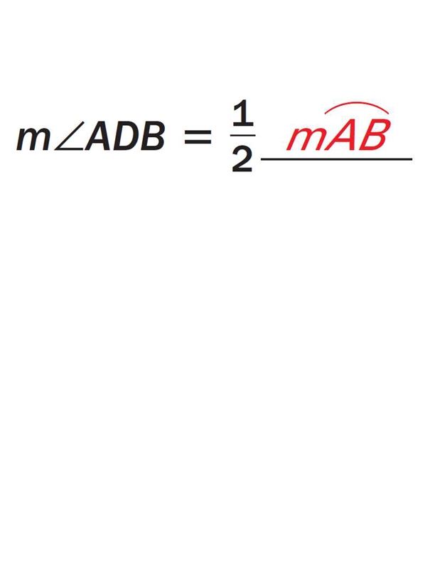 Complete the sentence: Two inscribed angles of a circle intercept _____, then the angles are ______.,  | arc AB, congruent |