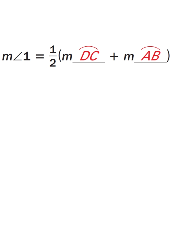 Chord to chord: What is the equation to find the measurement of angle 1?,  |  |