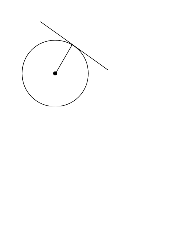 The radius or diameter of a circle to a line of tangency is _______.,  | Perpendicular |
