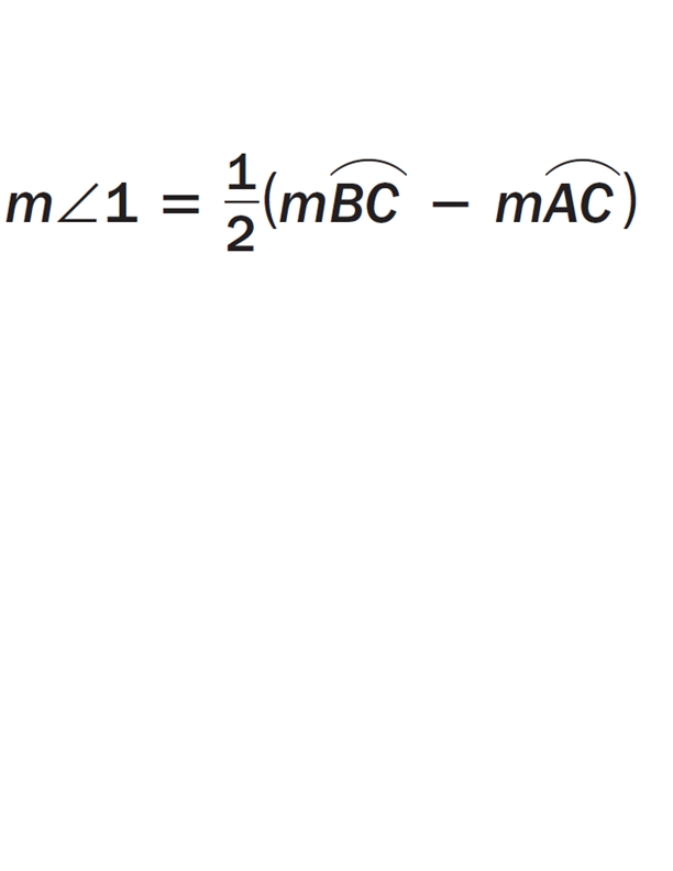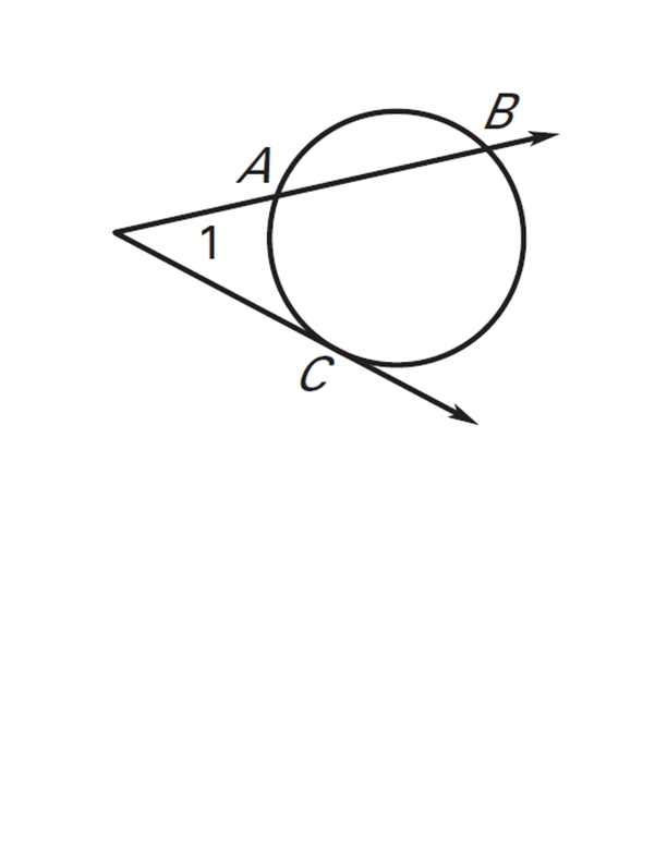 Tangent to secant: What is the equation to find the measurement of angle 1?,  |  |