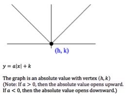 | The vertex form of the absolute value function with vertex at (h,k). | .,  |