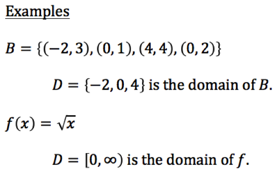 | domain of a relation | The domain of a relation is the set of values of the first coordinate of an ordered pair for which a relation is defined.,  |
