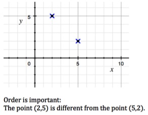 | ordered pair | On the coordinate plane, an ordered pair is the pair of numbers giving the location of a point.,  |