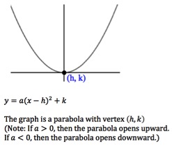 | The vertex form of a parabola with vertex at (h,k). | .,  |