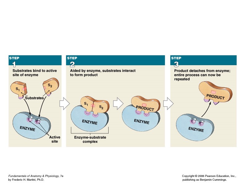 | How do enzymes work? Explain | Substrates bind to active site on enzyme--helped by enzyme, substrates inteact to form product, product is released from enzyme--enzyme is now ready to begin process again |