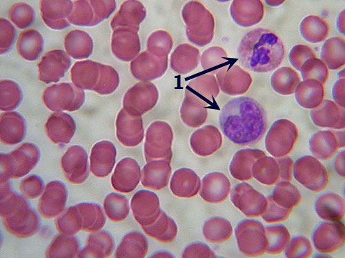 ?-,  | Blood Identification: The numerous round, red blood cells in a featureless matrix are unmistakable. Features to Know: the liquid matrix is called the plasma. The numerous round, red cells are erythrocytes (or red blood cells) that lack nuclei (the center of the cell is depressed and thus may appear lighter colored). There are also smaller numbers of larger white cells with large, multi-lobed nuclei called leucocytes (or white blood cells; 1). Fibers Present: none visible. Where Located: within the circulatory system. Functions: transport of nutrients, gasses, wastes, etc. |