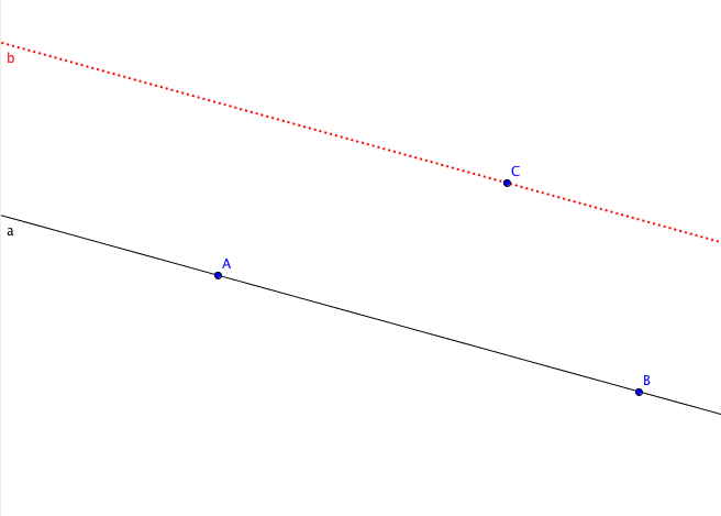 Postulate 13: Parallel Postulate,  | If there is a line and a point not on the line, then there is exactly one line through the point parallel to the given line. |