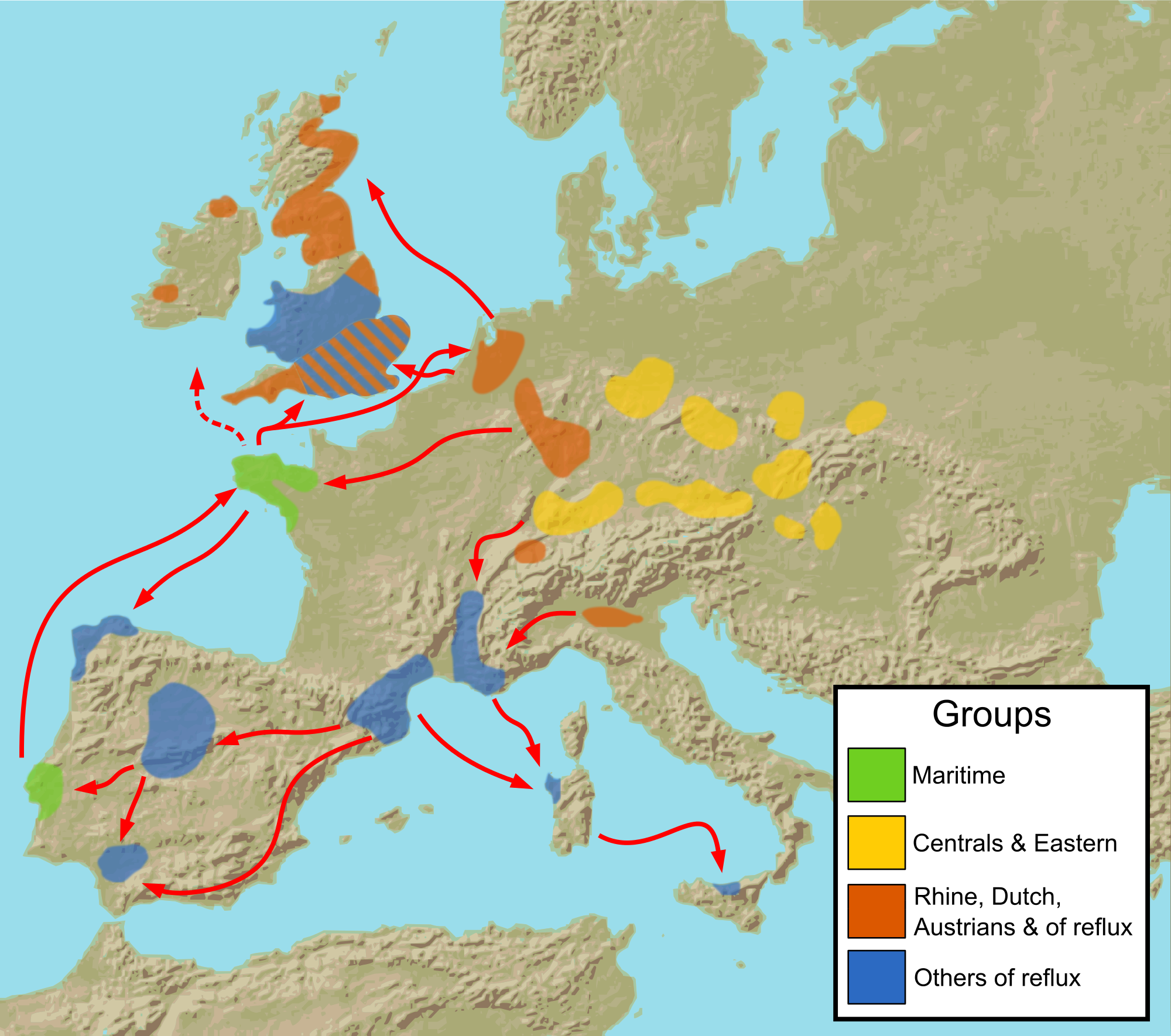 | the spreading of traits through the movement of people | relocation diffusion,  |