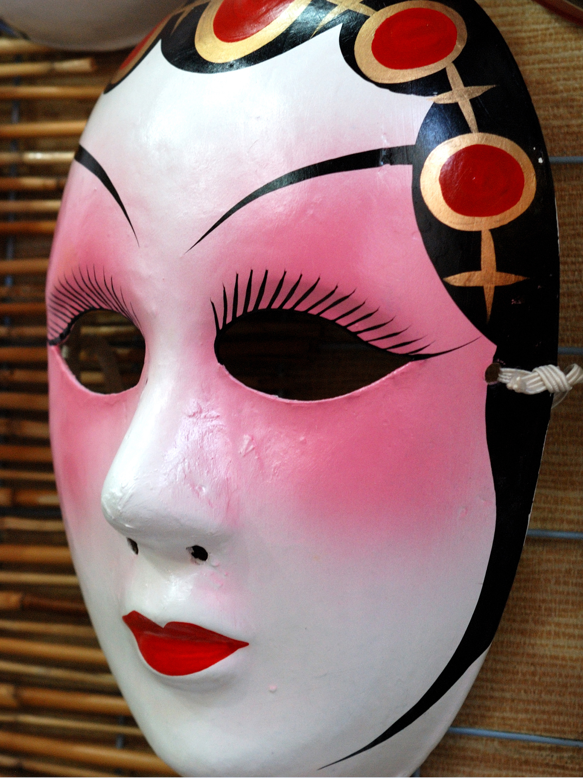 mask,  | usually something worn on the face to conceal one's identity for various cultural reasons |