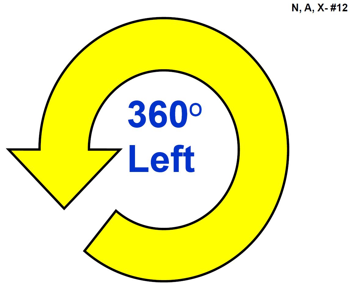 | While heeling, the team makes a 360° turn to the handler’s left. 360° turns are performed as a tight circle, but not around the exercise sign. |