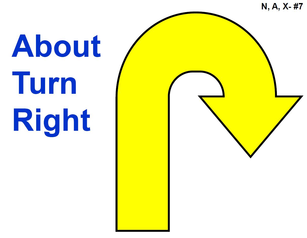 | Performed as a 90° turn to the right, as in traditional obedience. |