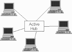 Active Hub,  | device that regenerates a received signal along the network. |