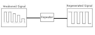 Repeater,  | Regenerates incoming signal to extend range of the LAN. |
