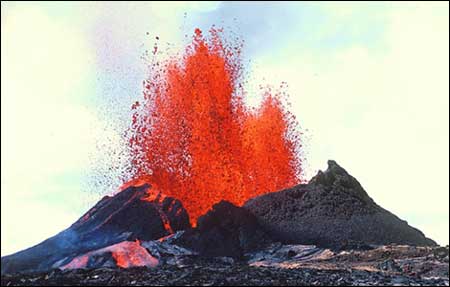 volcano,  | A weak spot in the crust where magma has come to the surface. |