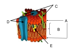The part of the molecules labeled A,  | phospholipid head (hydrophilic) |
