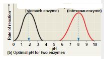 What best describes this graph?,  | Different enzymes have different optimum pHs in which they work best. |