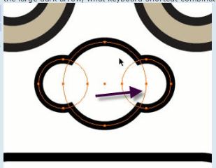 The graphic is from Adobe Illustrator. If you needed to hide the structures indicated by the large dark arrow, what keyboard shortcut combination would you use?,  | Contro; + H |