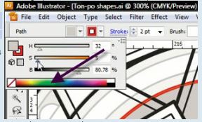 Look carefully at the graphic from Adobe Illustrator. If you hold down the Alt key while selecting black from the color spectrum bar, you will,  | change the stoke of the object to black. |