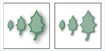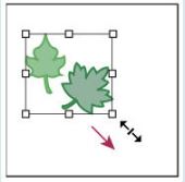 In the illustration, if you drag the bounding box in the direction of the red arrow,,  | you will maintain the aspect ratio of the leaves. |