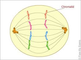 chromatid | one half of a duplicated chromosome (sister chromatids) |