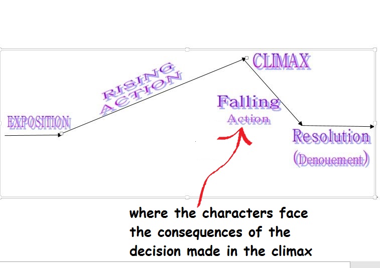 | falling action | where characters face the consequences of the decision made in the climax,  |