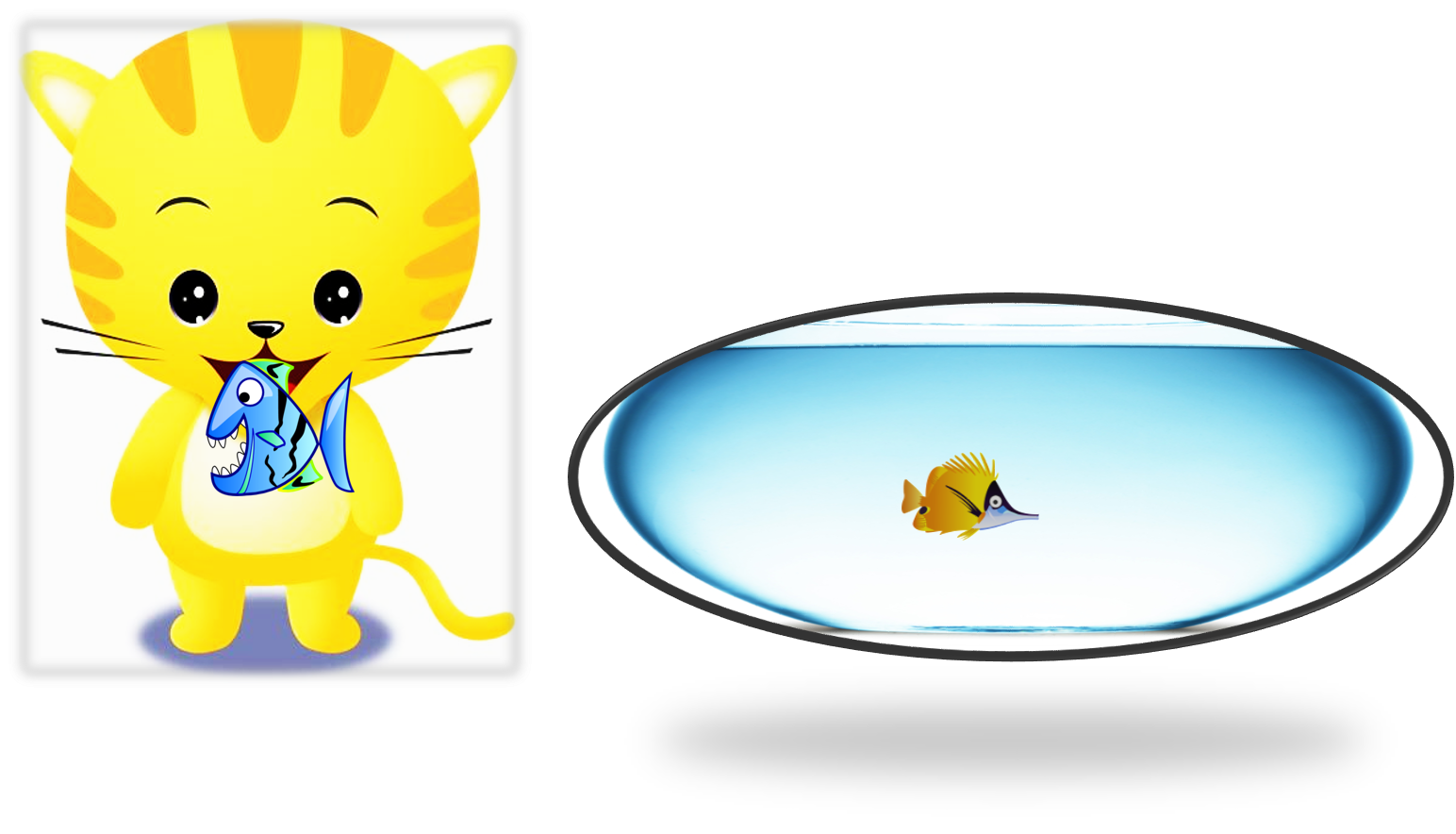 | El gato quiere comer al pez grande y lo come. |  |