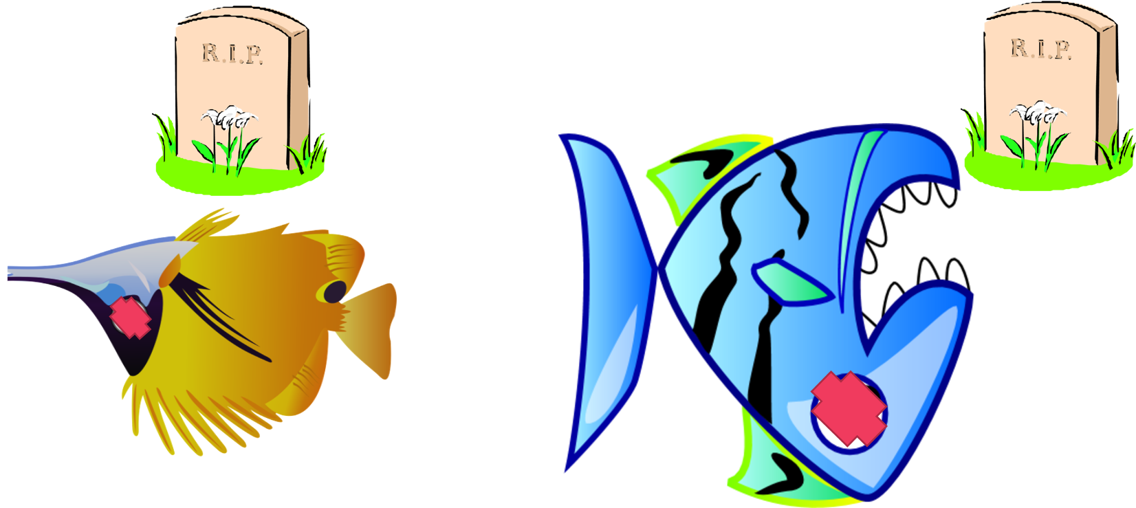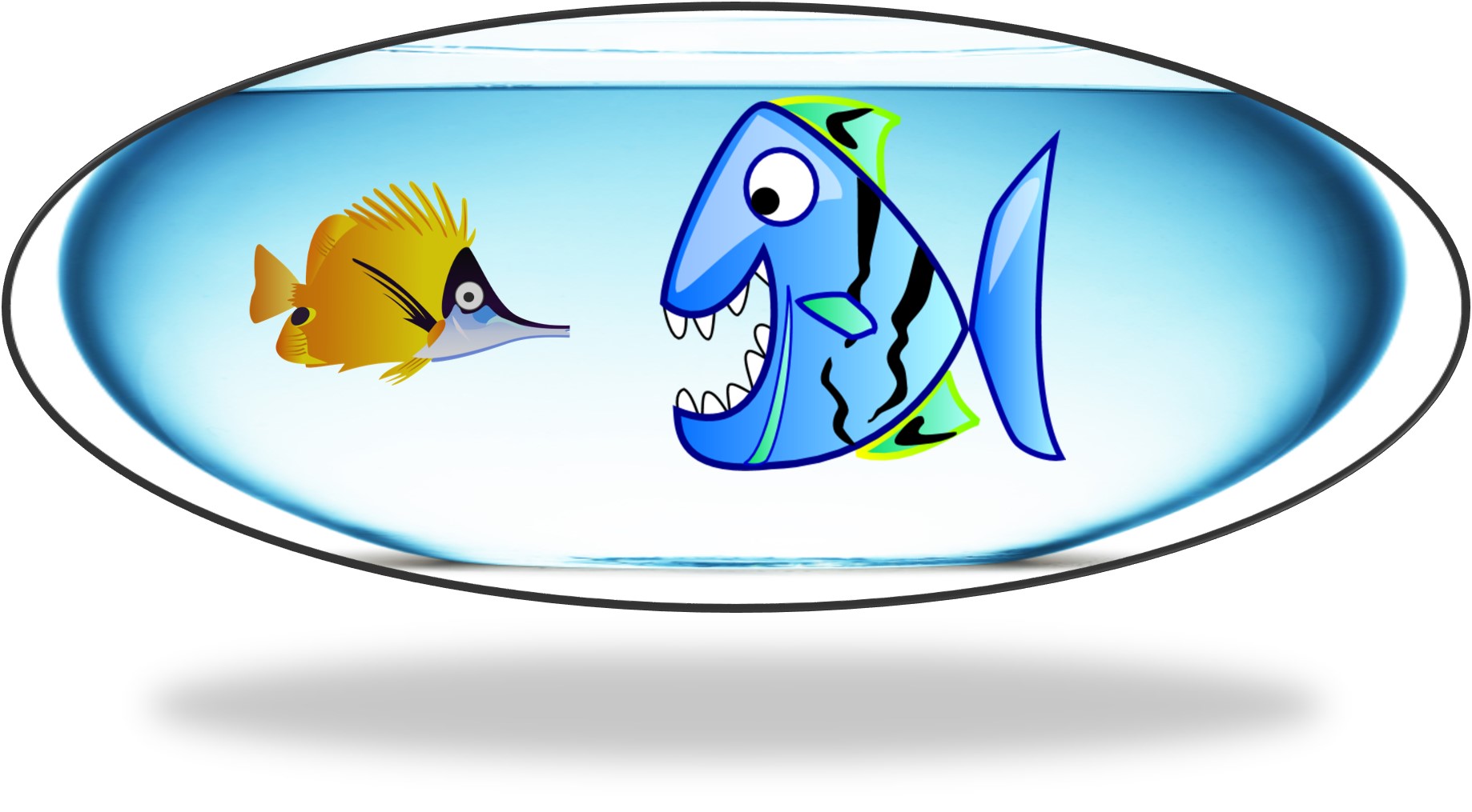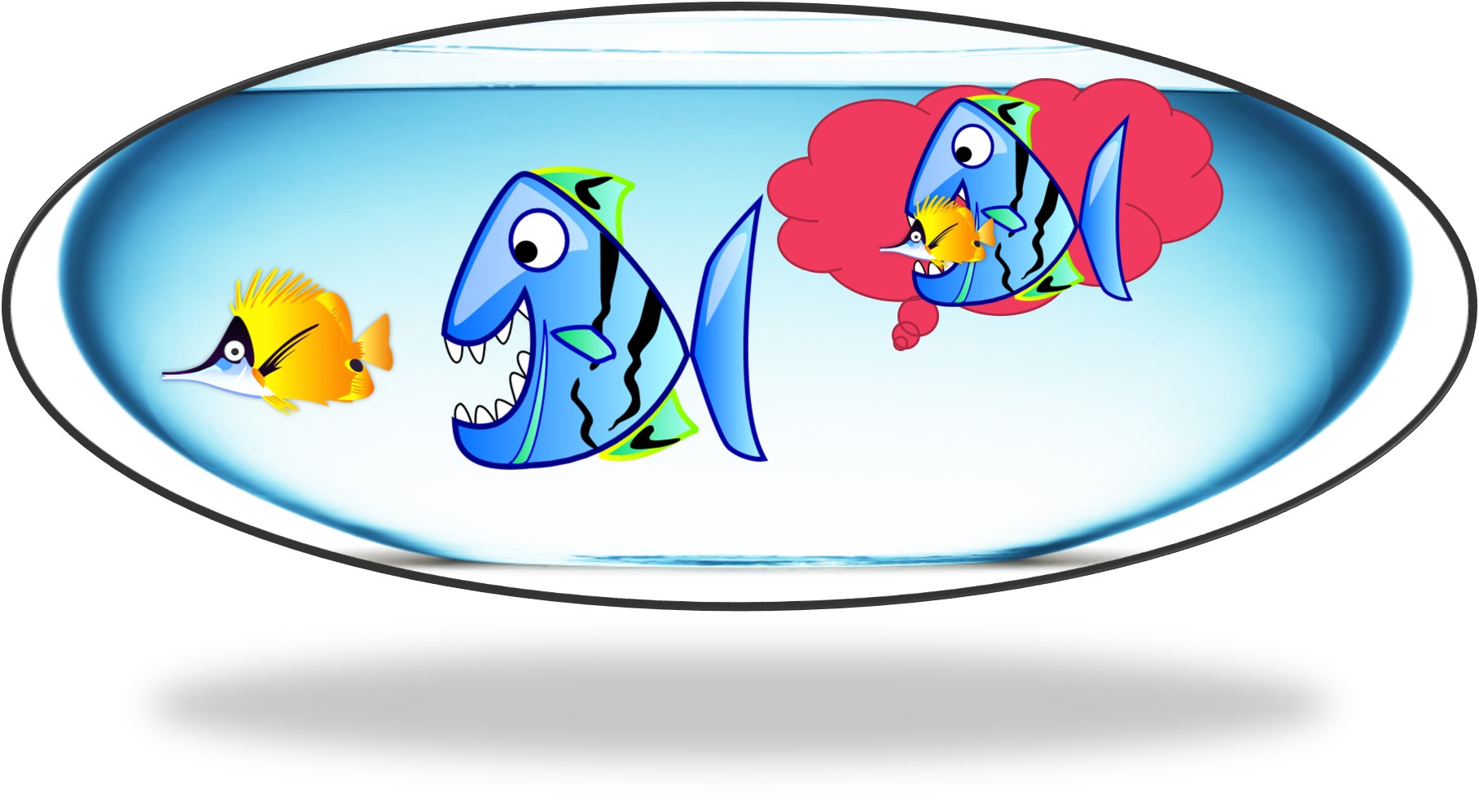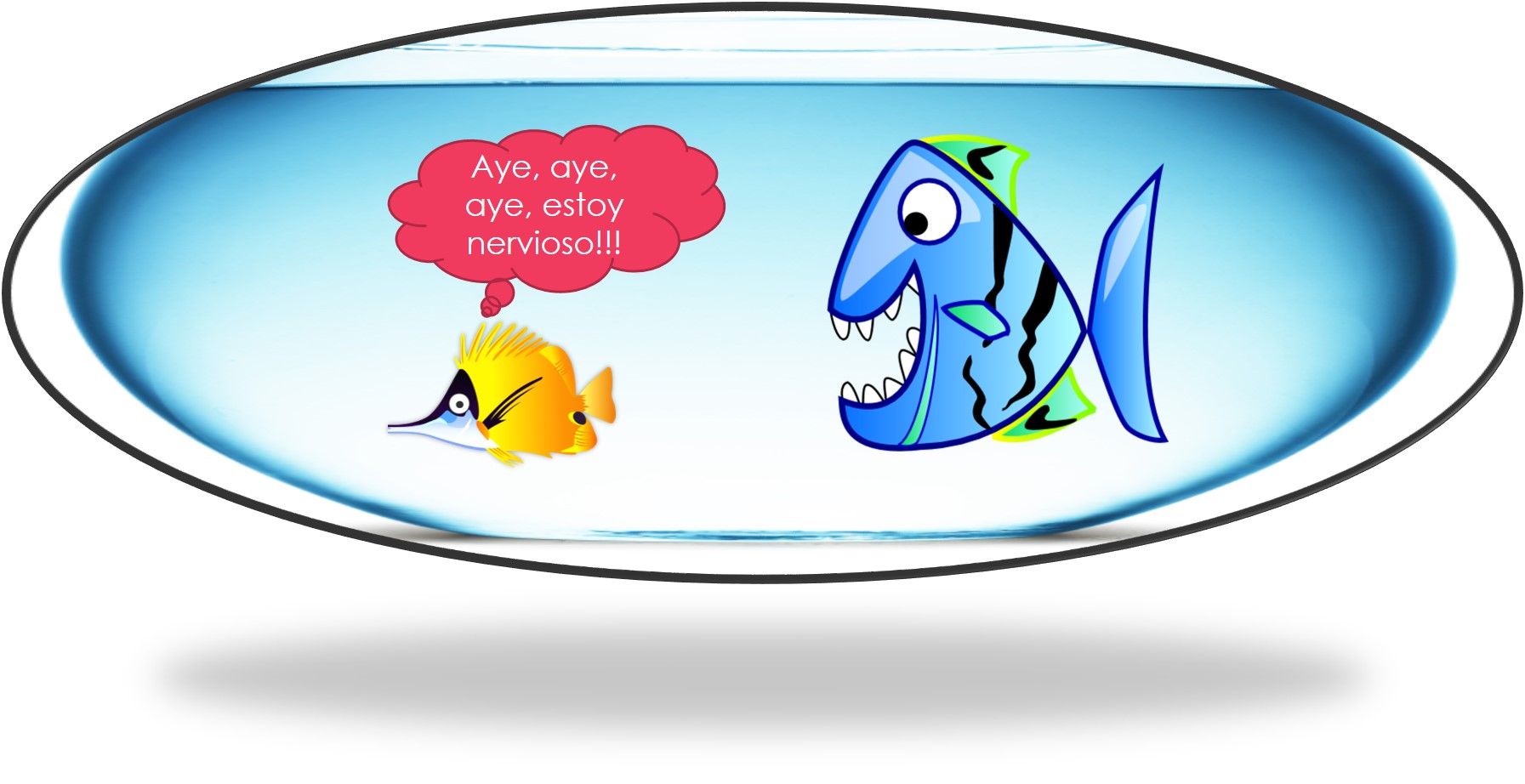 | El pez pequeño está nervioso porque el pez grande tiene mucha hambre. |  |