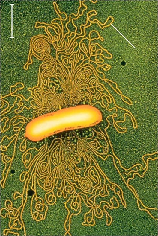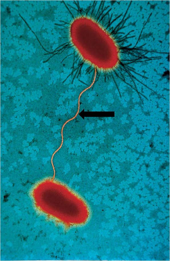 | conjugation in Serratia, exchanging genetic material via a sex pilus |