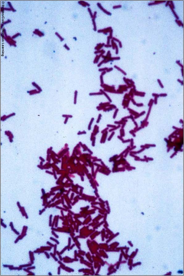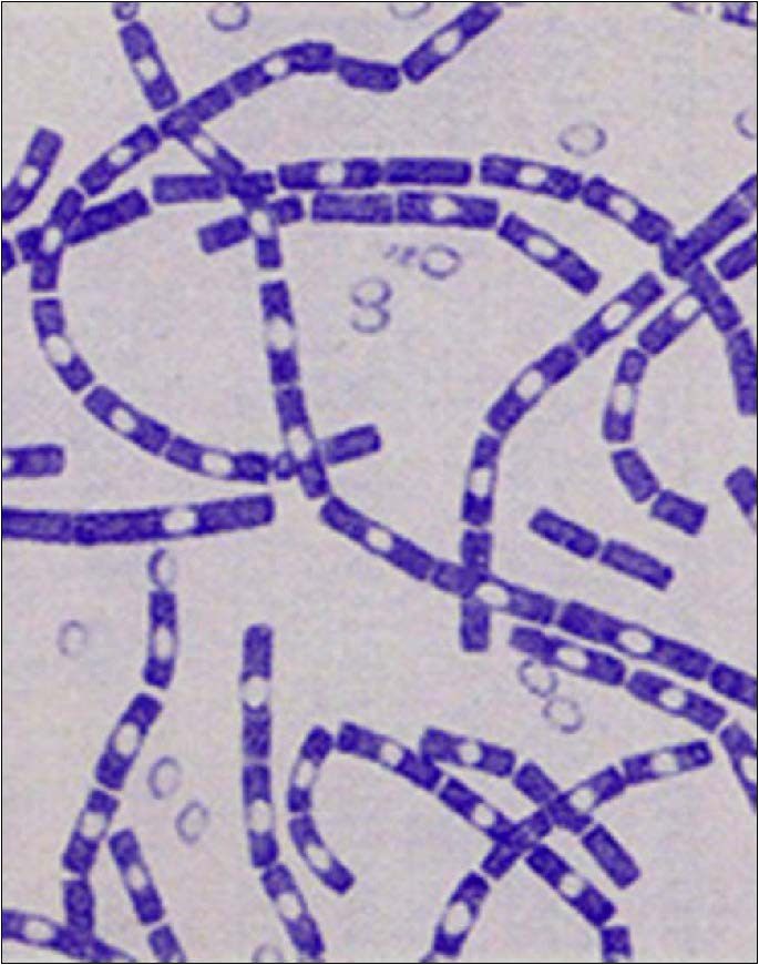 | Bacillus anthracis - domain Bacteria, phylum Eubacteria, Gram (+), causes anthrax, spore-forming |